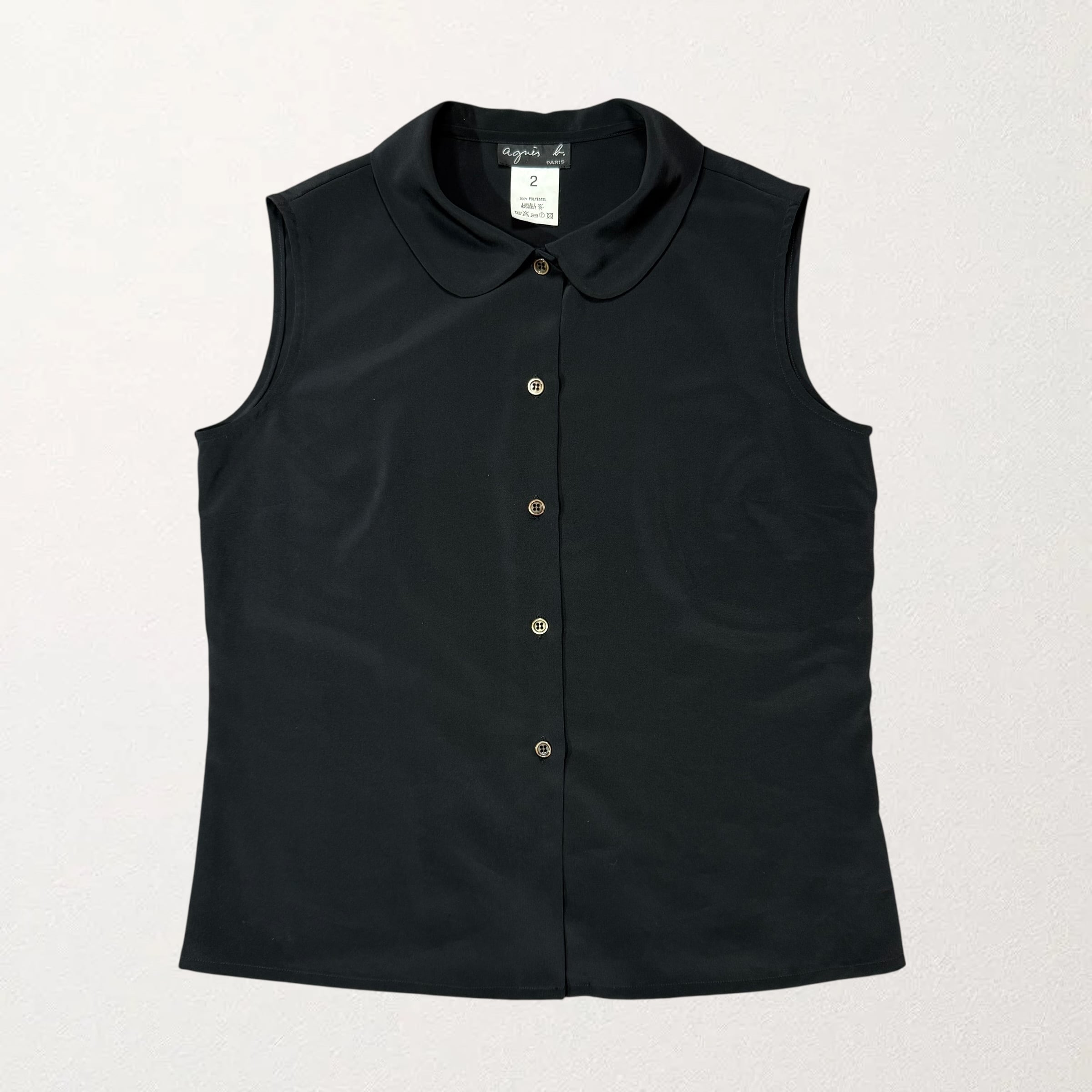 《1990's》agnes b. "Sleeveless Round Collar Polyester Shirt"