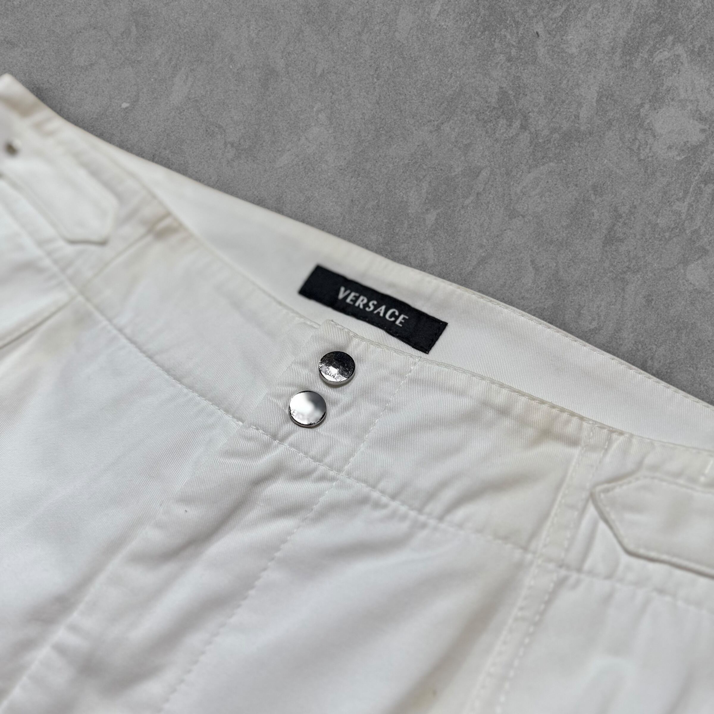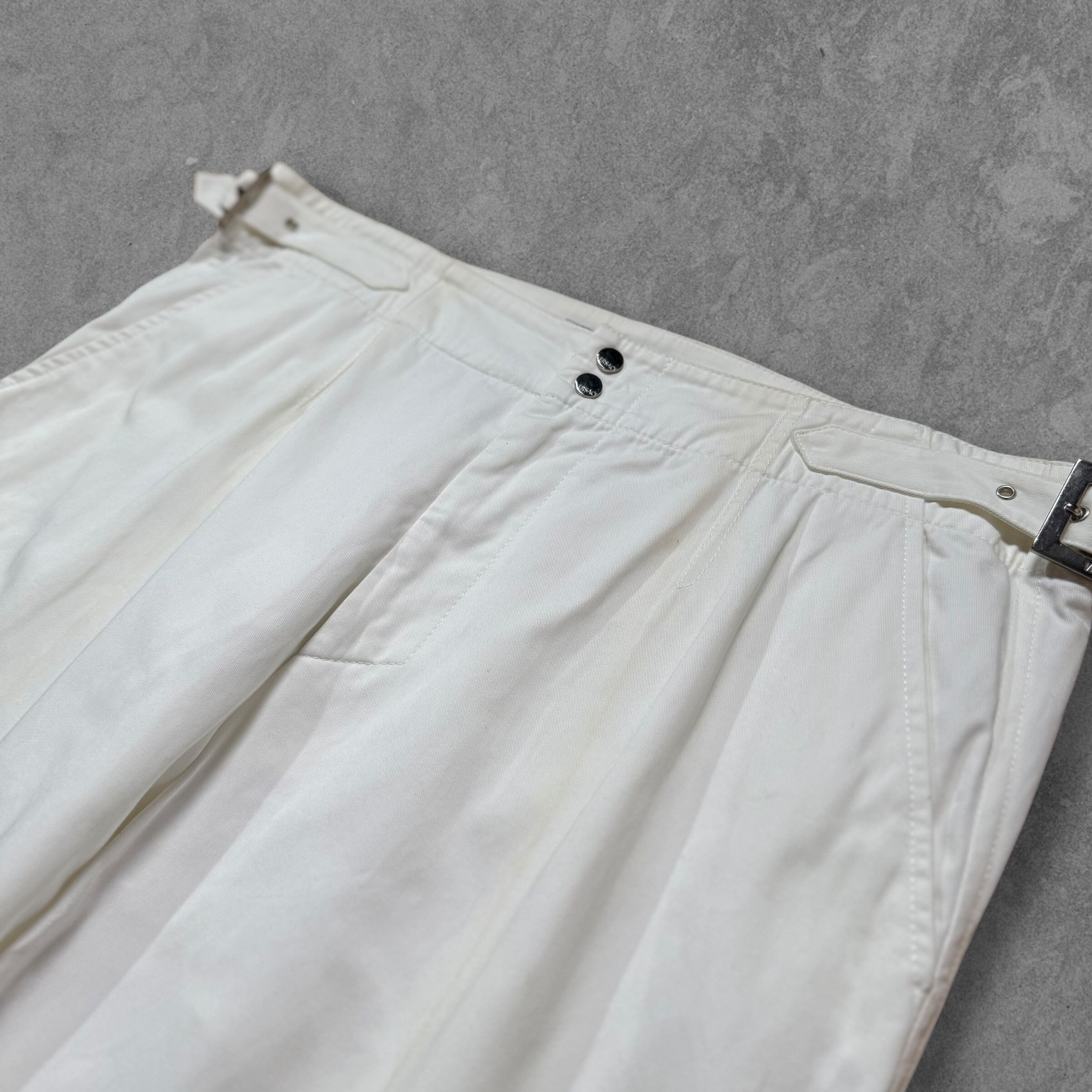 "VERSACE" 1990's Waist Buckle Wide Chino Trousers - White