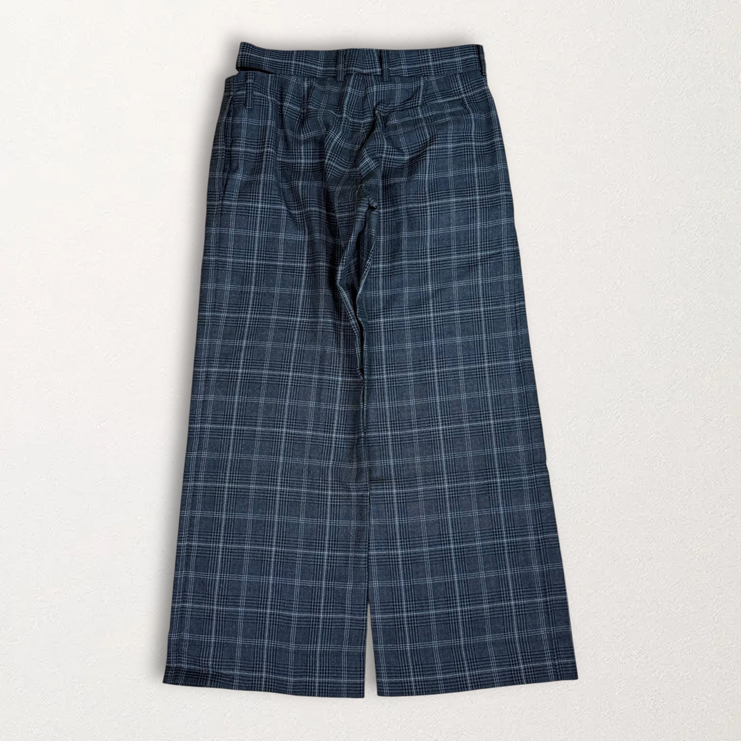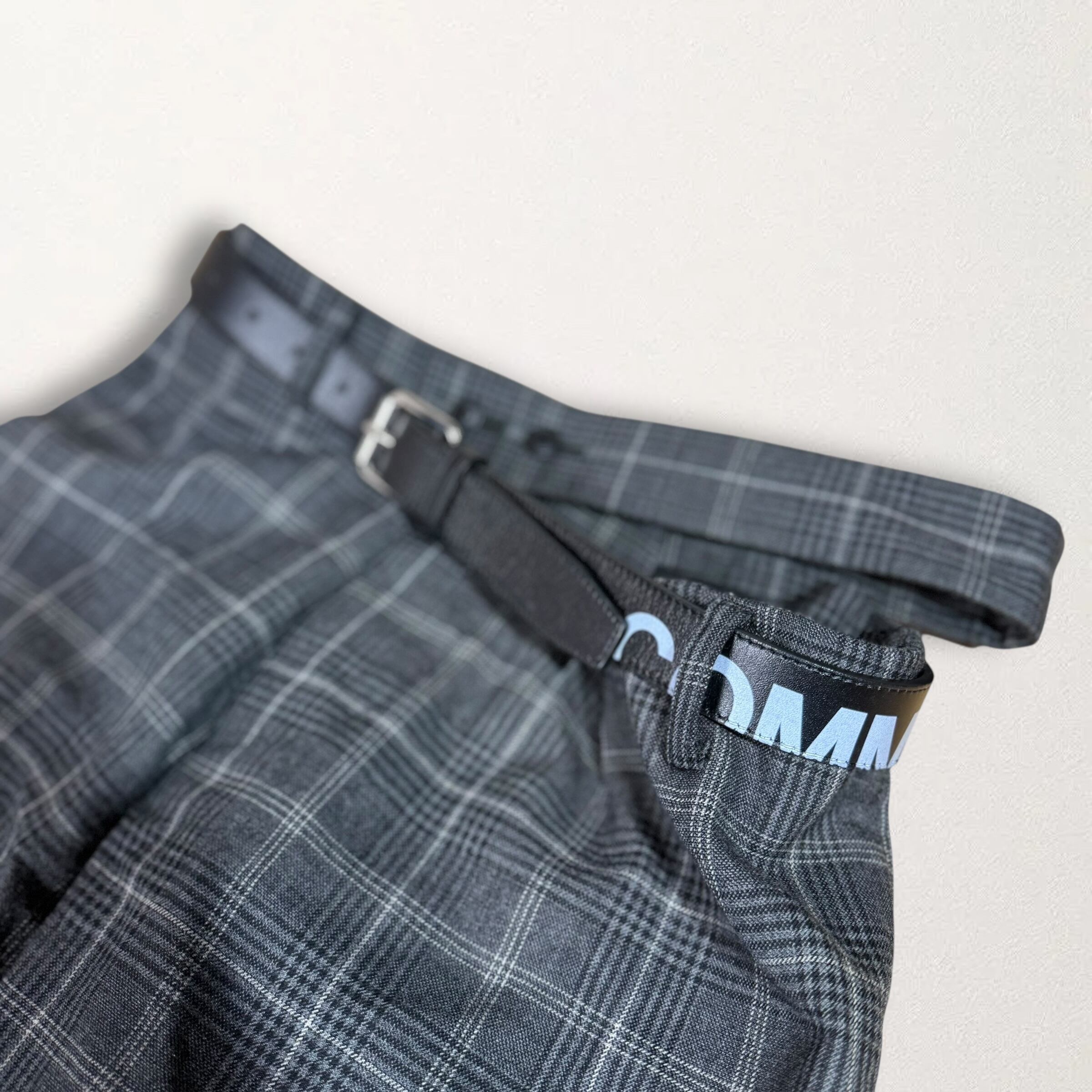 "Vivienne Westwood MAN" Deformed Waist Check Wide Trousers - Grey