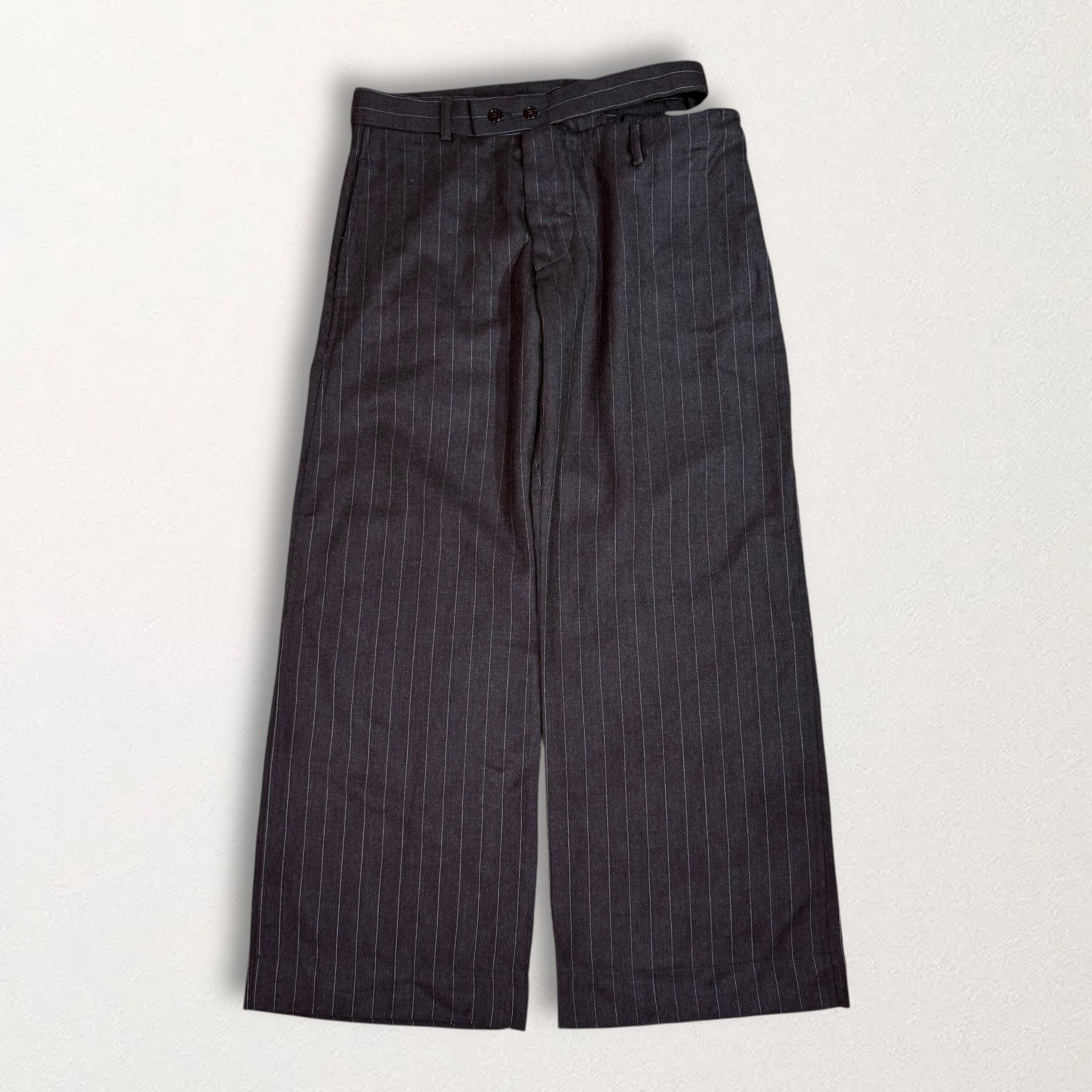 "Vivienne Westwood MAN" Deformed Waist Striped Wide Trousers - Brown