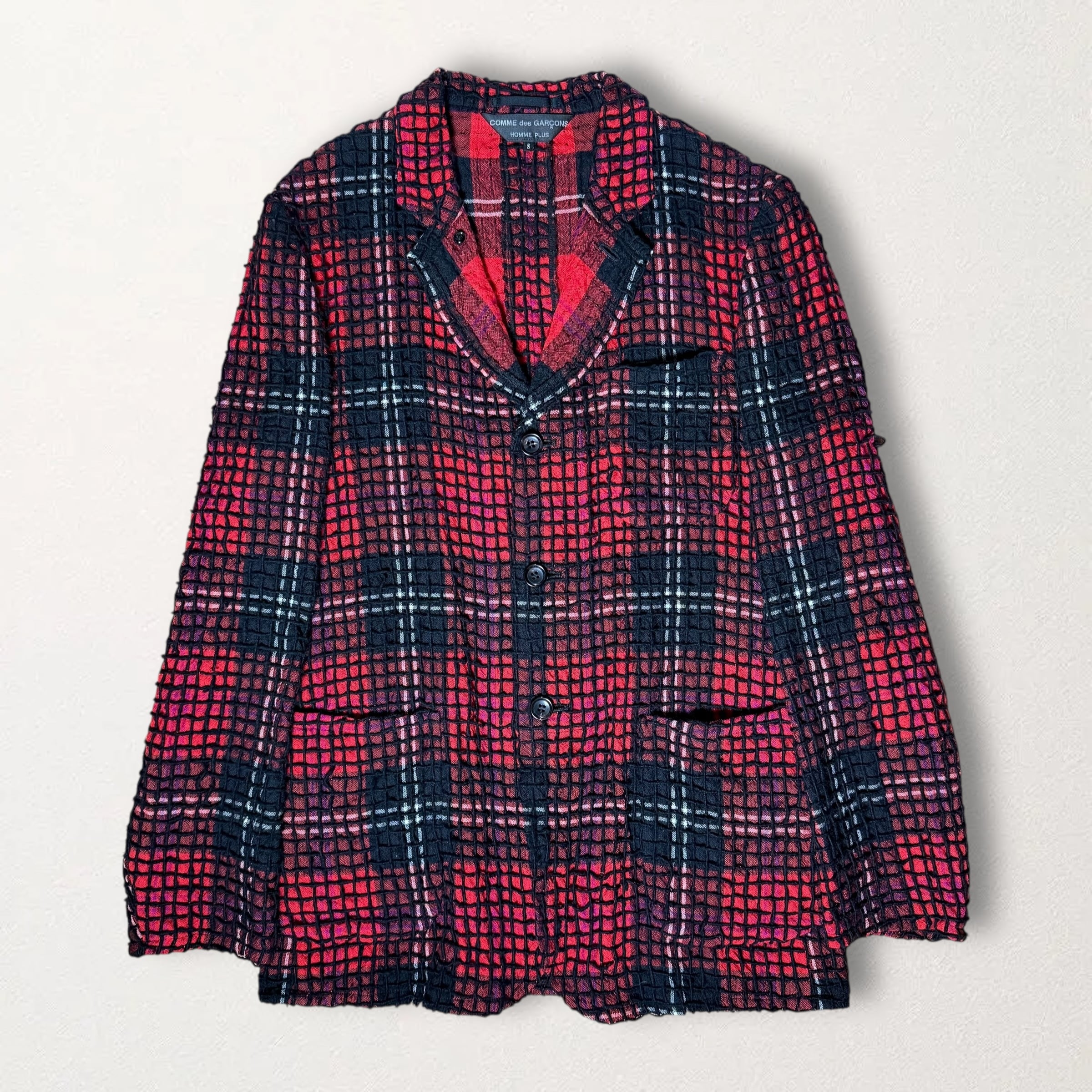 《04AW》"COMME des GARCONS HOMME PLUS" Meshed Wool 3B Tailored Jacket - Red