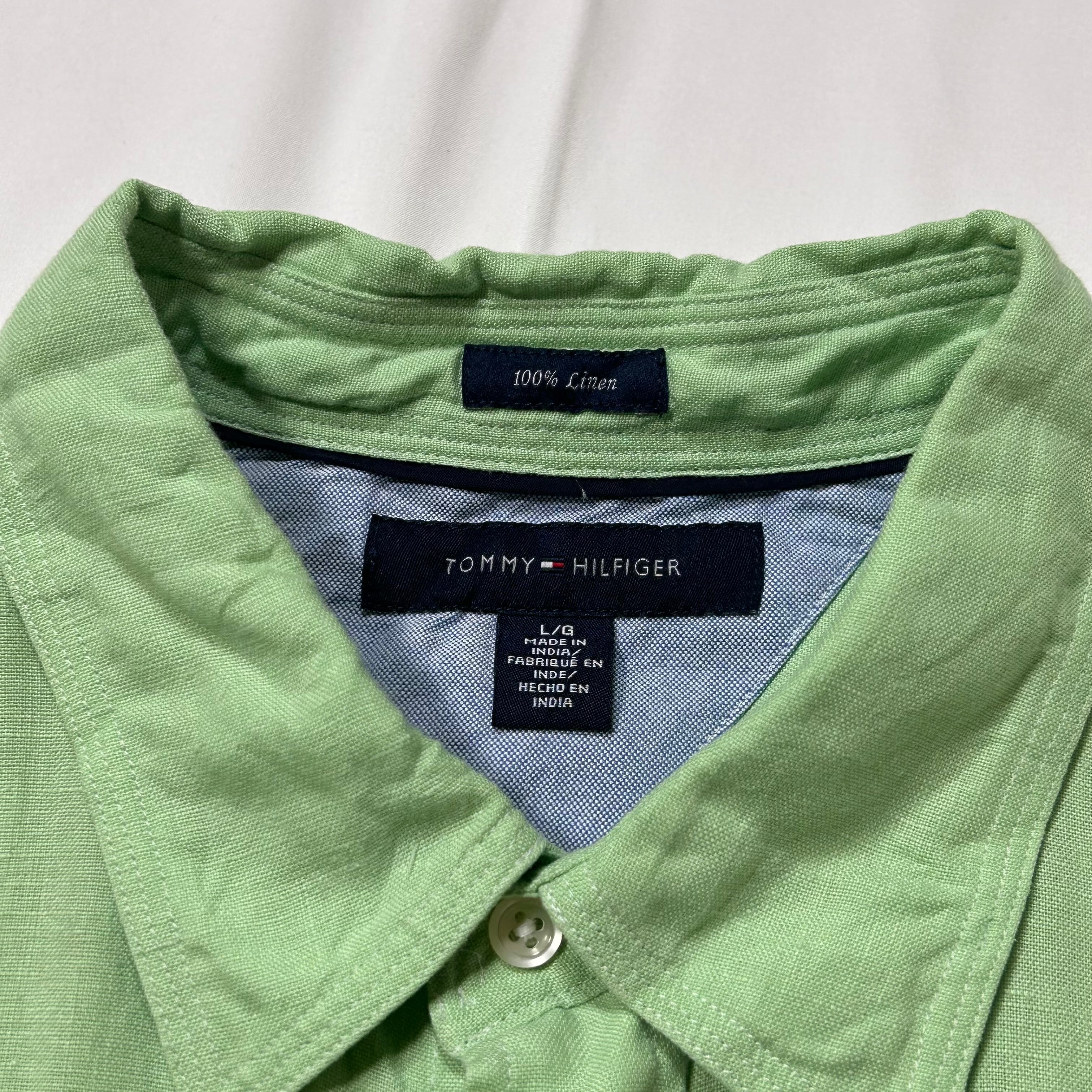TOMMY HILFIGER 2000's S/S Linen Shirt - Lime Green