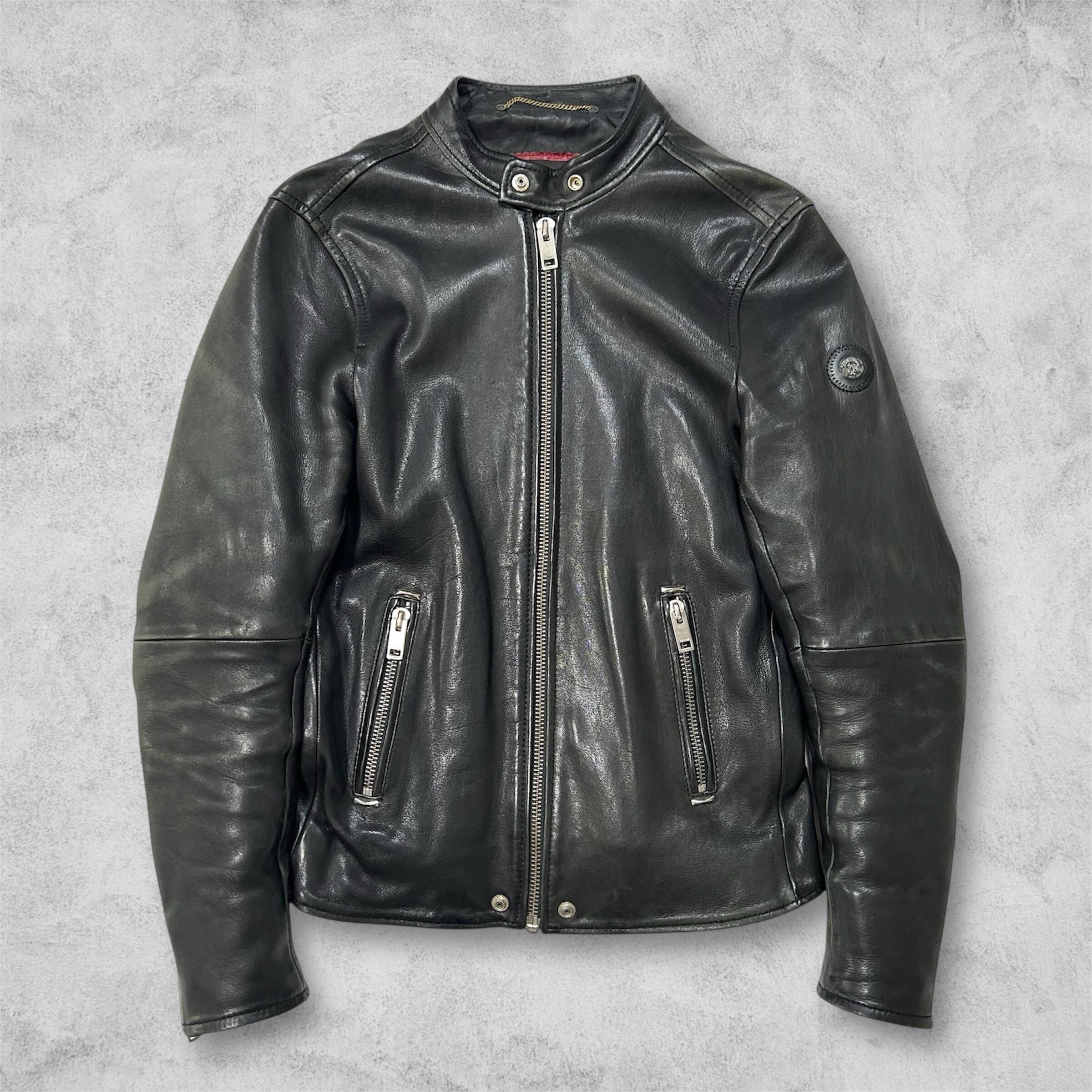 DIESEL Lamb Leather Single Rider's Jacket - Black