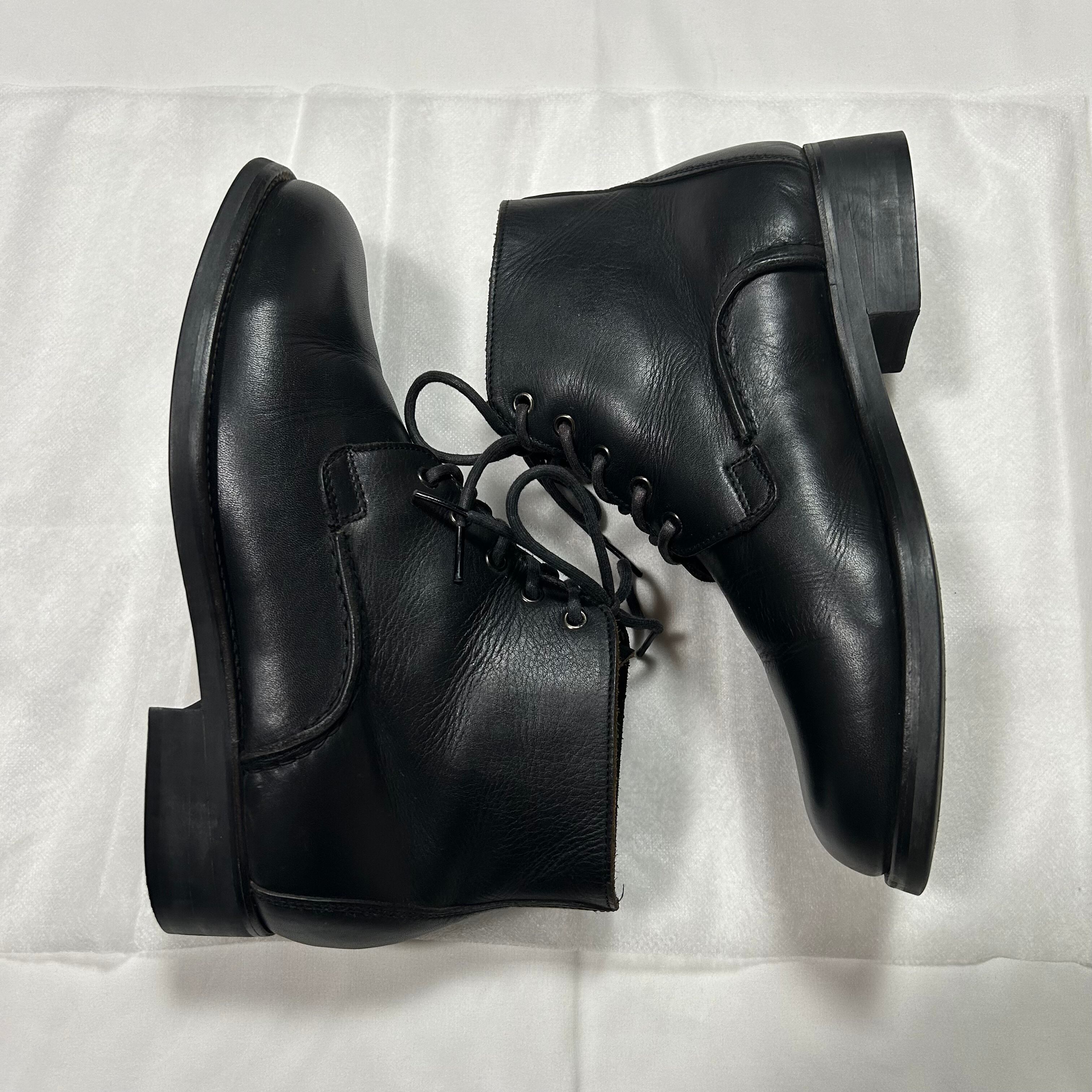 Y's for men 5Hole Leather Short Boots - Black